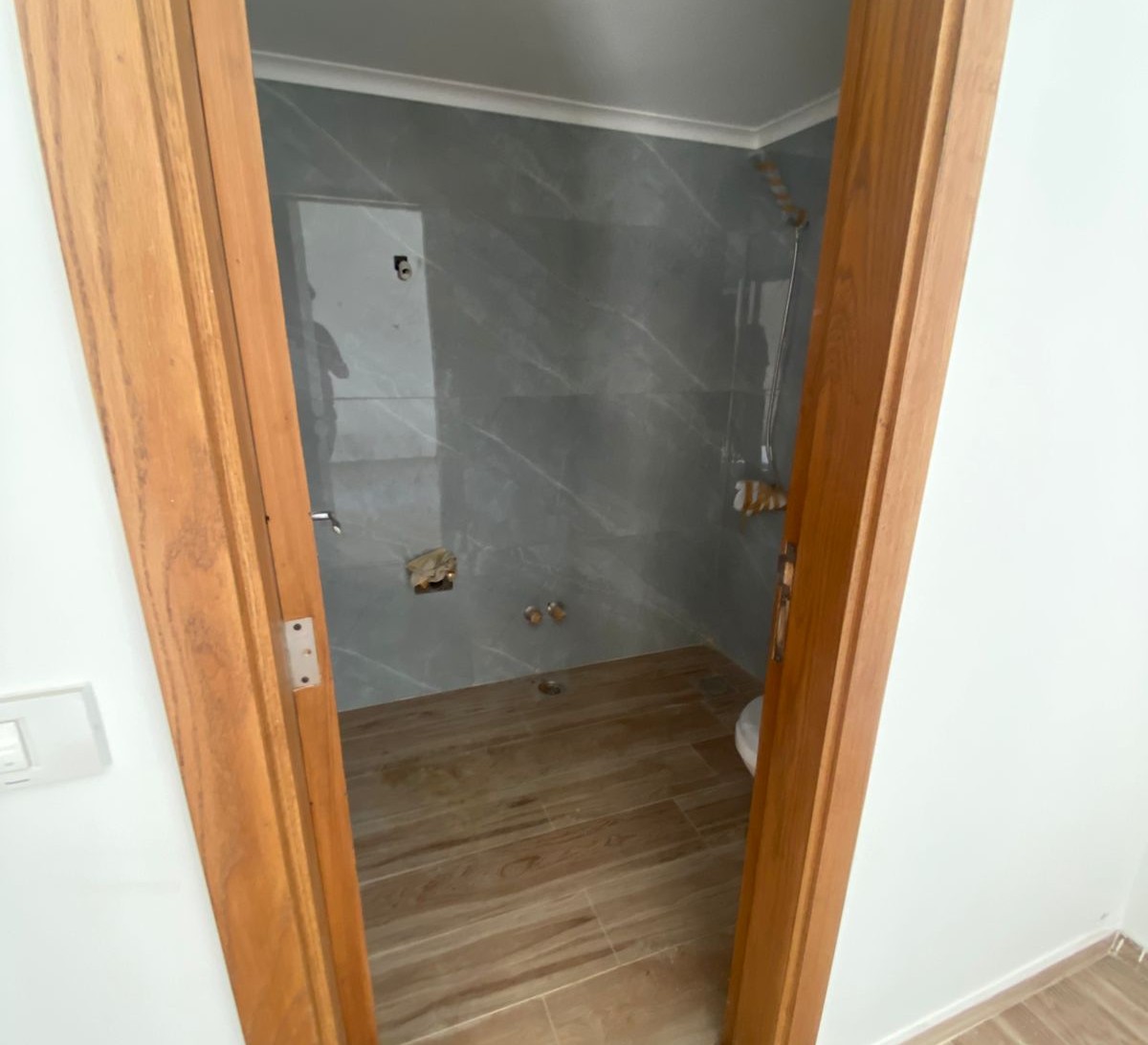 تتألف الشقة من صالون، غرفة طعام، غرفة نوم ماستر، غرفتي نوم عاديتين، ثلاثة حمامات، ومطبخ، مع توزيع عملي مناسب للسكن العائلي.