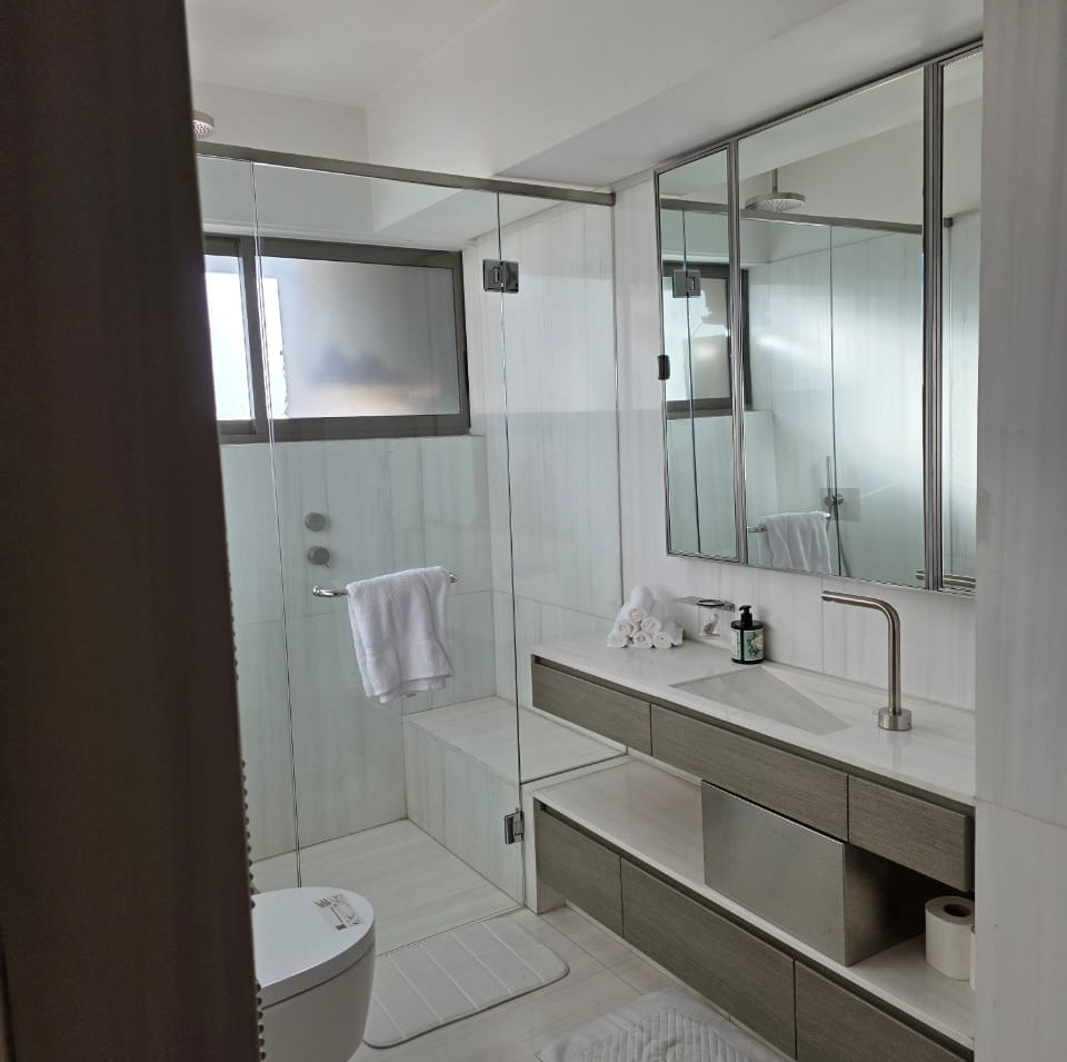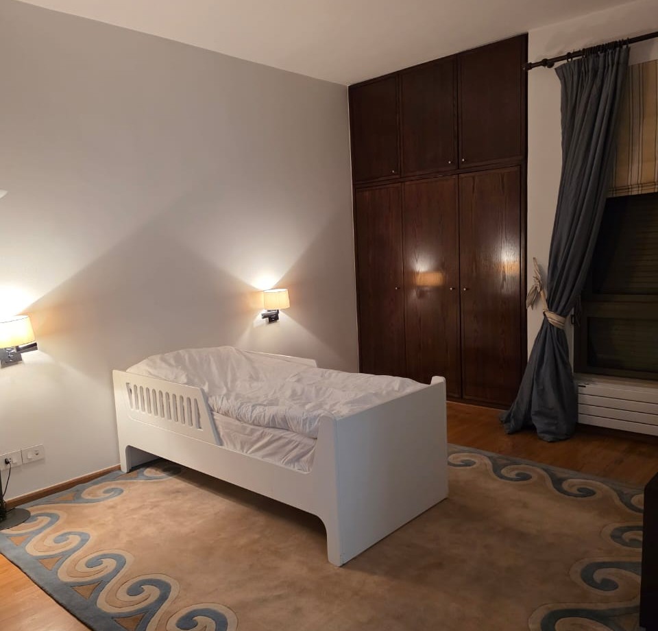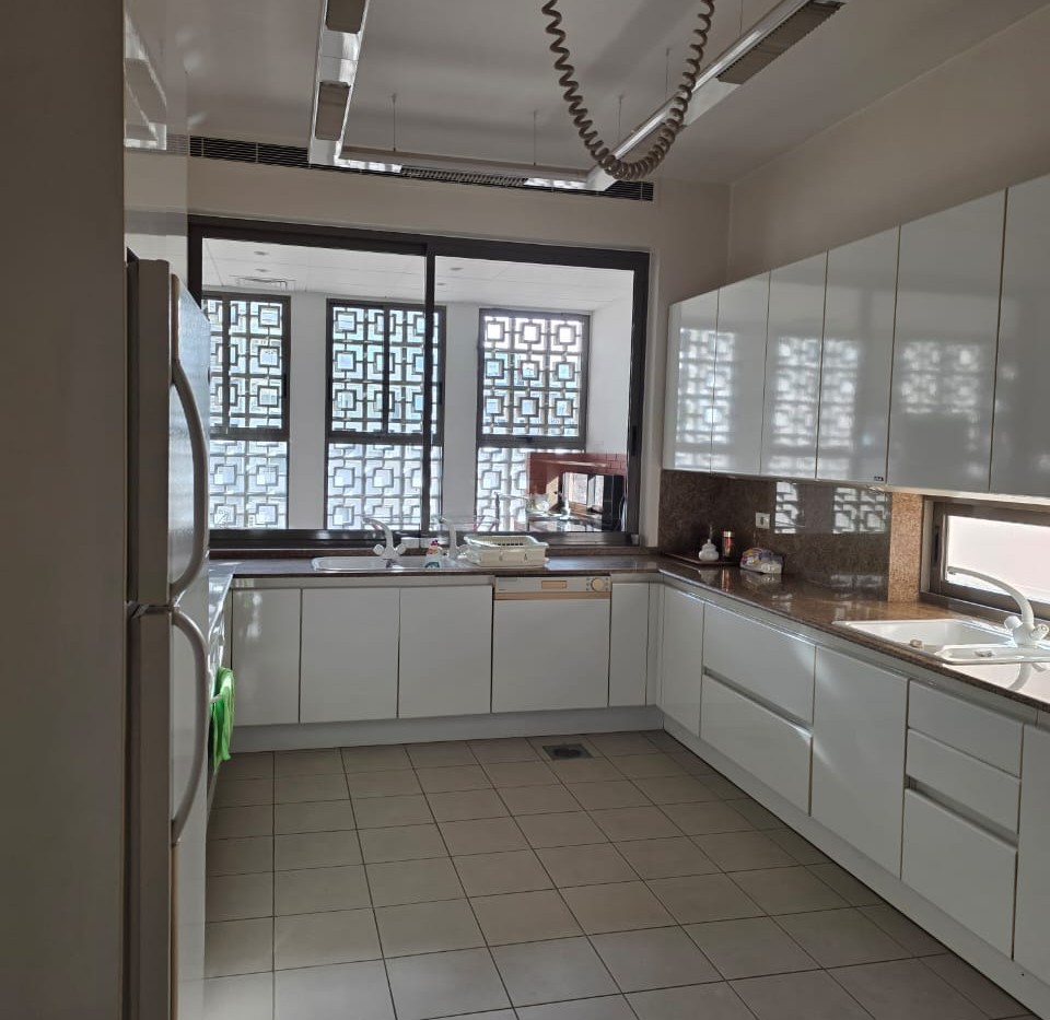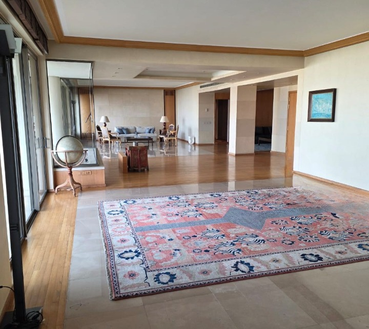 The apartment features three master bedrooms, each with en-suite bathrooms, a total of five bathrooms, a maid’s quarter, and well-designed living and dining areas. The property also includes a driver’s room, five parking spaces, and a storage room, ensuring maximum convenience and functionality.