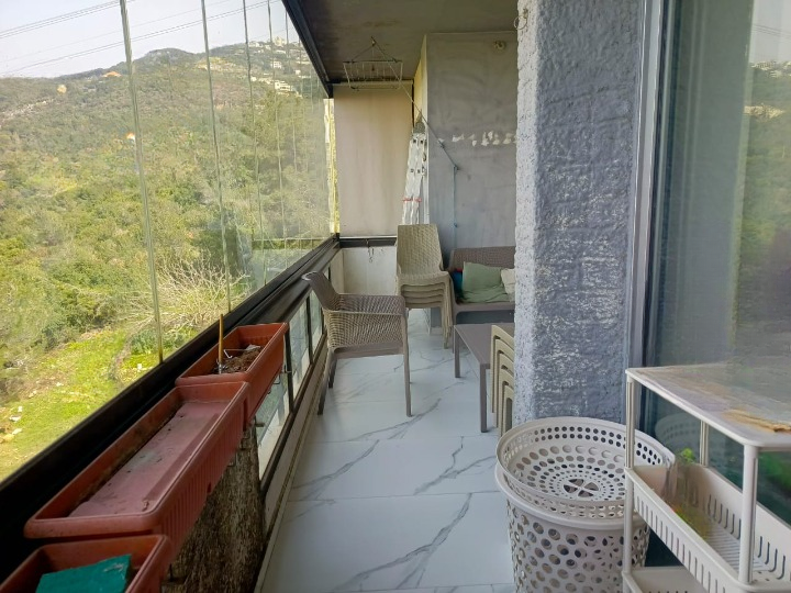 تقع هذه الشقة في الطابق الثاني في عين سعادة، وهي مفروشة جزئياً وتتميز بإطلالة بانورامية رائعة على البحر والجبل.